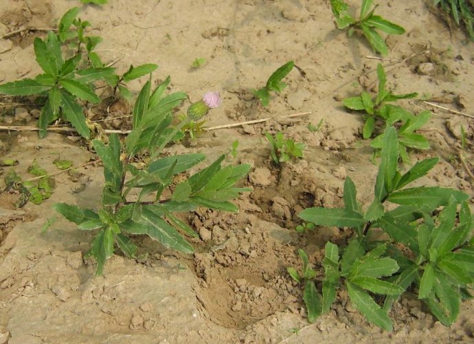 [url=] [/url] 曲菜娘子:叶狭长较厚而硬,边有锯齿,叶子贴着地面生长,秋后抽茎,高0.5~1尺多。籽很小,上有白毛。幼苗容易和曲菜苗相混,但曲菜叶较宽软,锯齿也不明显。吃了它脸部会变肿。 [url=] [/url] 毒芹:又名野芹菜、白头翁、毒人参