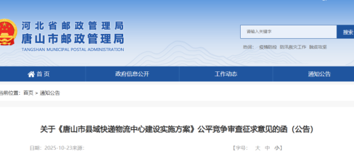 唐山市县域快递物流中心建设实施方案正式印发