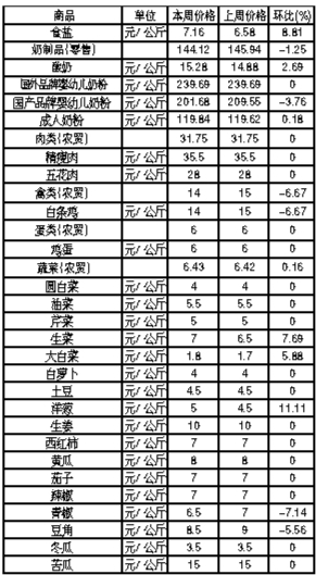 唐山生活必需品周价格情况表(2月18日至2月24日)