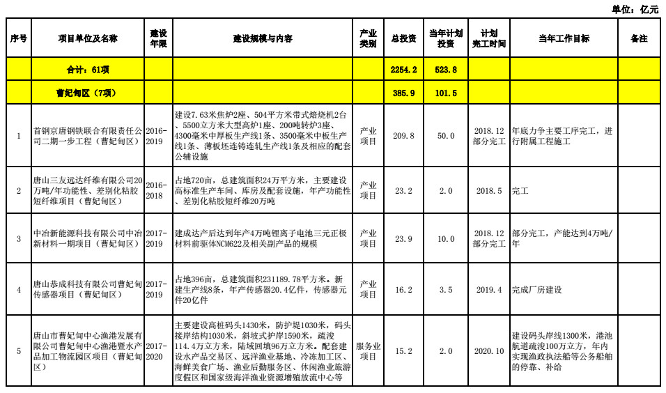 近日,唐山市发改委网站发布了《唐山市2018年重点项目计划》,详细列出唐山各地重点项目(计划开工项目、续建项目、前期项目)建设规模、投资、计划开工与完工时间、当年工作目标等内容,你家乡有哪些重点项目?