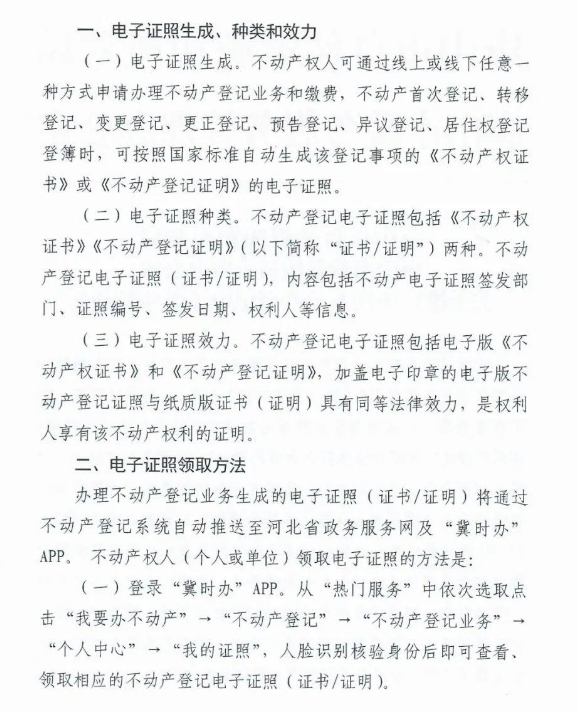 不动产登记电子证照领取方式、应用场景、查验方式等内容详见《通告》。