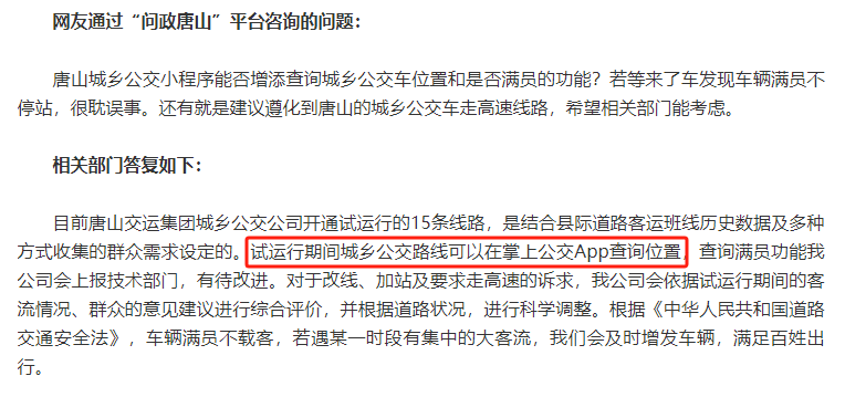 唐山城乡公交开通之后大大方便了大家的出行有网友询问能不能实时查询城乡公交车的位置↓