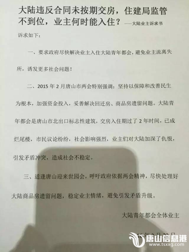 下午,维权群众去了丰润区政府,当地信访办局长做了公开的接待。相关领导表示,是这几天会给业主回复,包括工程进展情况以及丰润区的工作等业主关心的问题。