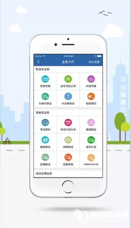 3.驾驶证业务:考试预约、取消考试预约、期满换证、超龄换证、损毁换证、遗失补证、延期换证、延期提交身体条件证明、变更驾驶证联系方式、考试费缴纳(即将开通)。