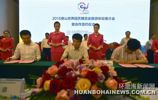 环渤海新闻网消息 (记者 李莹)6月4日,2016唐山世界园艺博览会旅游体验推介会暨合作签约仪式在唐山南湖国际会展中心举办。活动中,有北京神舟国际旅行社、中国国际旅行社、天津市永泰国际旅行社等160家旅行社现场签约,另有多家旅行社表示将进一步洽谈合作事宜并陆续签约。