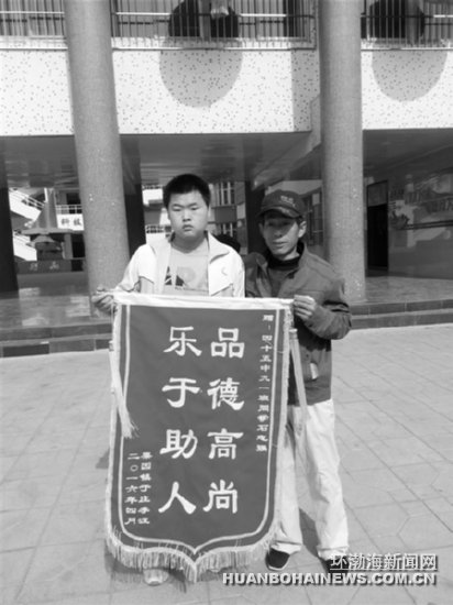 4月20日,迁安市民韩先生为首钢子弟学校送来一面锦旗和感谢信,感谢该校五年级一班的孙博雅同学。4月14日下午6时,孙博雅放学回家,在楼下发现一件衣服和一个蓝色背包,他在原地等了半个多小时,也没人来认领,只好先回到家告诉了妈妈。娘俩打开背包,想看看里面有没有失主的信息,却发现里面有3万元现金,仔细一看,还有两张医疗卡、工伤证明和病例本。孙博雅和妈妈按着医疗卡上面的姓名挨家询问,最终通过一个邻居,联系到了失主韩先生,此时已是晚上九时多。失主拿出钱对孙博雅表示感谢,却被他婉言拒绝。