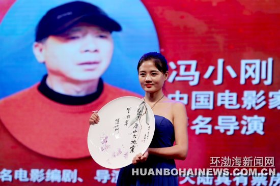 著名导演冯小刚题写瓷盘现场认捐 记者 付卫峥 习彦哲 摄