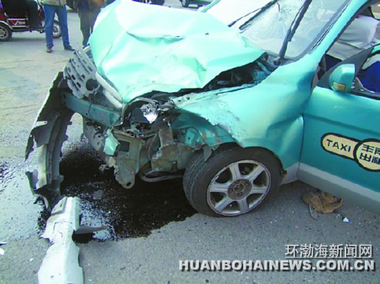 环渤海新闻网消息 (记者 魏伟)近日,在丰南区汇通路一十字路口发生了惨烈的一幕,一辆出租车与一辆私家轿车发生猛烈碰撞,出租车损毁严重,驾驶人及乘客均受伤。