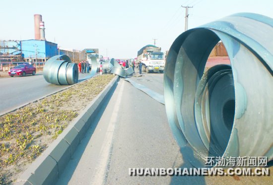 险!两货车肇事带钢滚落40余米