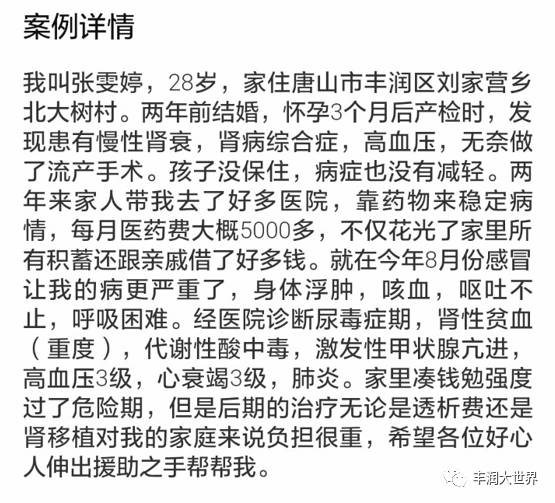 唐山90后尿毒症女孩的求助!求大家帮帮我!我们大家一起帮帮她吧!