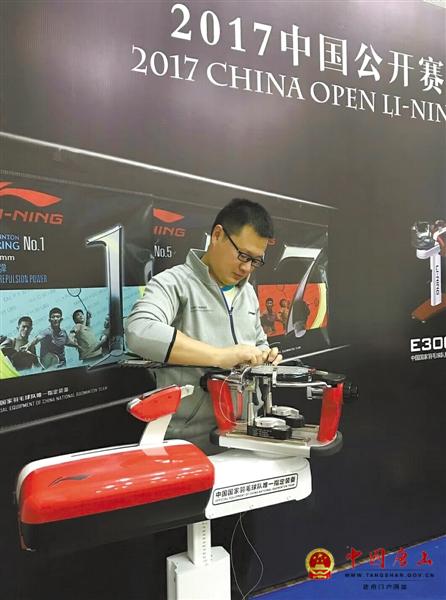 实际上,每次世界顶级赛事圆满举办的背后,都活跃着一支为参赛选手提供专业穿线服务的穿线师队伍,为赛事的顺利举办默默奉献着。作为2017中国羽毛球公开赛官方穿线服务团队成员,赵春龙坦言,"这次为中国羽毛球公开赛提供穿线服务,我是咱们河北省的唯一代表,而且我也是第一次到国际赛场给队员穿线服务,心里还是有一定的压力的,特别是赛事期间,我们穿线师需要第一时间了解球员对球拍手感的反馈,在赛前给球拍及时准确地调整磅数,球员的满意就是我们穿线师的最大满足。"