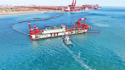 唐山强化服务保障全力推进重点项目开工复工 精准服务“点对点” 重点项目“加速度” 近日,交通运输部重点支持项目唐山港京唐港区25万吨级航道工程复工,全面加快工程进度。这是在工程海域,一艘施工船进行施工作业。河北日报通讯员 李磊 摄