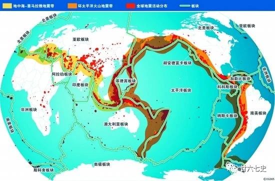 环太平洋地震带:分布在太平洋周围,包括南北美洲太平洋沿岸,从阿留申群岛、堪察加半岛、日本列岛南下至我国台湾省,再经菲律宾群岛转向东南,直到新西兰。根据板块运动理论,全球划分为若干个板块,太平洋板块中部的洋中脊快速扩张,使得板块边缘与东西两侧的亚欧板块和美洲板块发生碰撞,从而导致环太平洋区域地震频发。根据现有资料统计,环太平洋地震带是全球分布最广、地震最多的地震带,所释放的能量占全球的80%以上。 |