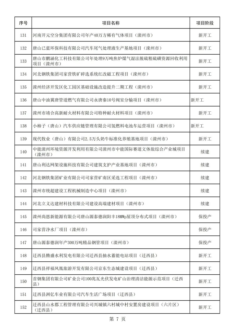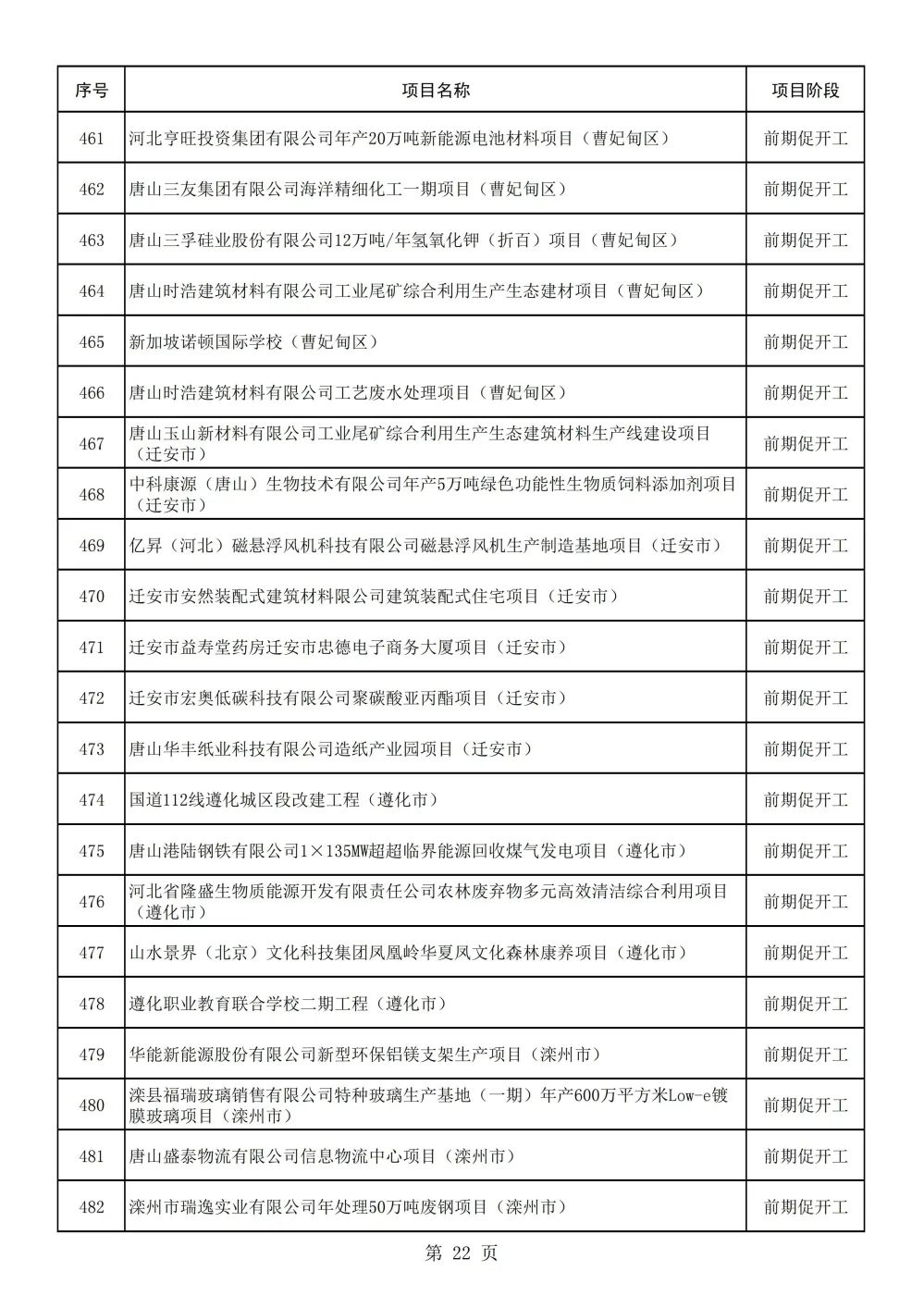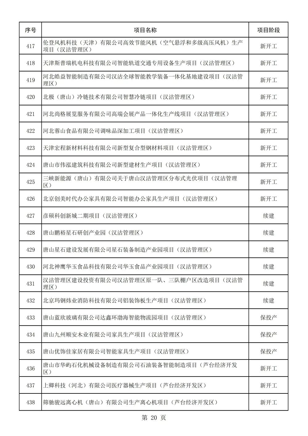 唐山市2023年重点项目名单