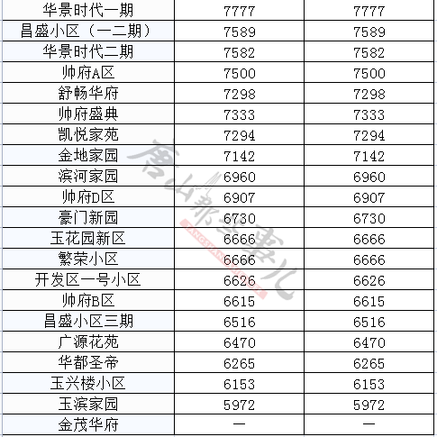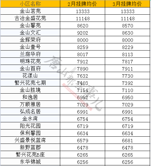 唐山各县区二手房3月最新汇总表(仅!供!参!考!)