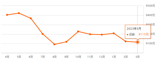 同比去年同期上涨 1.77% ↑迁安市 迁安3月二手房均价 9115 元/平米