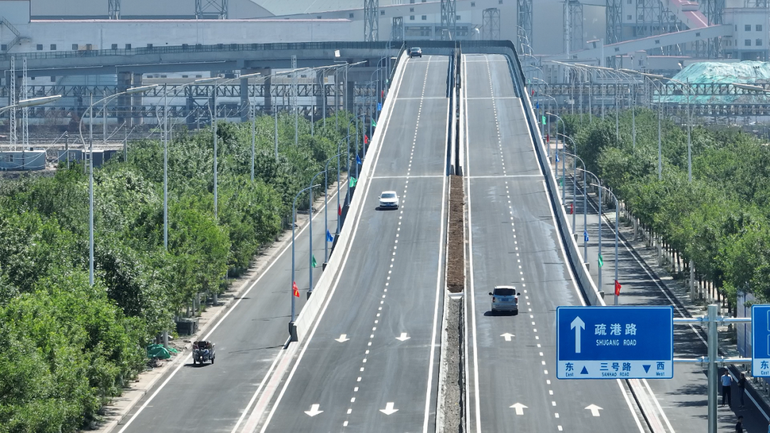 据了解,文化大街立交桥项目总投资约2亿元,采用T形互通立交,定位为互通匝道,分为A、B两个匝道,为单向双车道。它的正式通车,使文化大街自西向东跨越铁路后,通过立交桥与疏港路融会贯通,从根本上打通了首钢矿石码头至周边大型企业厂区的运输通道,大大降低了车辆运距和运输成本。同时,实现群众和职工出行的“绕转直”,打通了海港区与乐亭开发区的区域联通,成为串起海港区高质量发展的“金腰带”,对于完善区域路网、改善交通环境、带动周边产业发展、推动经济稳进提质具有重要意义。