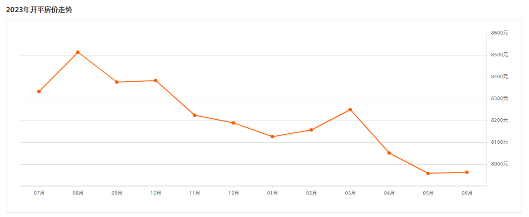 环比上月上涨 0.23% ↑高新区 开平区 开平6月二手房均价 7963 元/平米