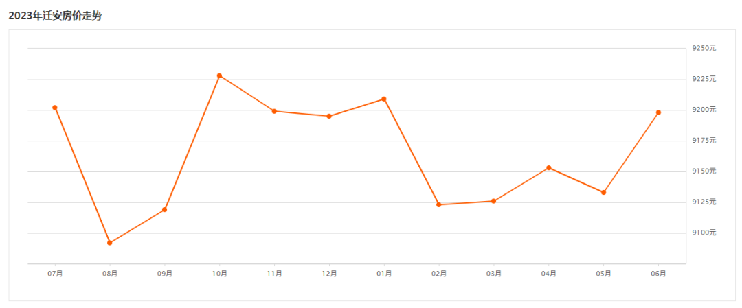环比上月上涨 0.24% ↑迁安市 迁安6月二手房均价 9198 元/平米