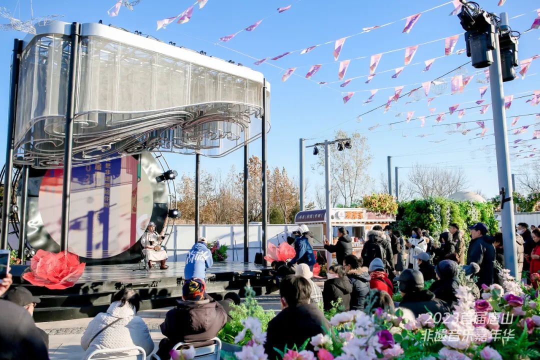 11月24日,由唐山文旅集团、中国数字文化集团联合主办的2023首届唐山非遗音乐嘉年华在唐山南湖旅游景区盛装启幕。活动以“我把非遗唱给你听”为主题,围绕非遗音乐嘉年华、非遗市集、非遗小舞台三个主单元开展系列文化活动。知名歌手和乐队登台献艺、融汇传统民乐与当代节奏的非遗音乐嘉年华,汇聚众多国家和省级非遗传承人、展示50余个非遗项目的非遗市集,多位国家一级演员带来的非遗精品节目演出,持续三天的非遗文化盛宴,让唐山市民和八方游客尽享精彩纷呈的非遗文化之旅,全面传承弘扬中华优秀传统文化,展现英雄城市唐山的无限魅力和别样精彩。 非遗+音乐 激发传统文化活力 华灯初上,夜幕渐临,唐山南湖旅游景区丹凤朝阳广场灯光璀璨、人潮涌动、热闹非凡。作为活动的重头大戏,非遗音乐嘉年华汇聚了女高音歌唱家陈思思,音乐才子郭峰,实力歌手金润吉,民族流行歌手乌兰图雅,融合民族、摇滚的跨界音乐团体战旗乐队、额尔古纳乐队,马头琴呼麦乐团东方神骏、新疆歌舞组合天山雪莲等众多实力歌手和乐队,传统非遗和流行时尚的创新互动,非遗元素与文艺表演的完美融合,让非遗文化可听、可看、可感、可知,迸发出更加旺盛的生命力,深深植根在现场观众的心中。 非遗音乐嘉年华在气势磅礴的歌曲《蒙古乡》表演中拉开帷幕,融合蒙古族长调民歌元素的激昂音乐瞬间将活动推入高潮。金润吉带来的歌伴舞《阿里郎》将朝鲜族这一抒情民歌代表作与流行音乐碰撞在一起,绽放出全新的魅力。《摘星记》则将朝鲜族长鼓、琵琶、古筝、中阮等多种乐器汇聚到一起,共同营造出丰富多变的艺术氛围。天山雪莲组合带来经典民歌《掀起你的盖头来》等歌曲唱出了新疆各族人民对美好生活的热爱和向往。当熟悉的旋律响起,每位观众都被现场的热烈氛围所感染,不由自主地合着节奏舞起来、唱起来。