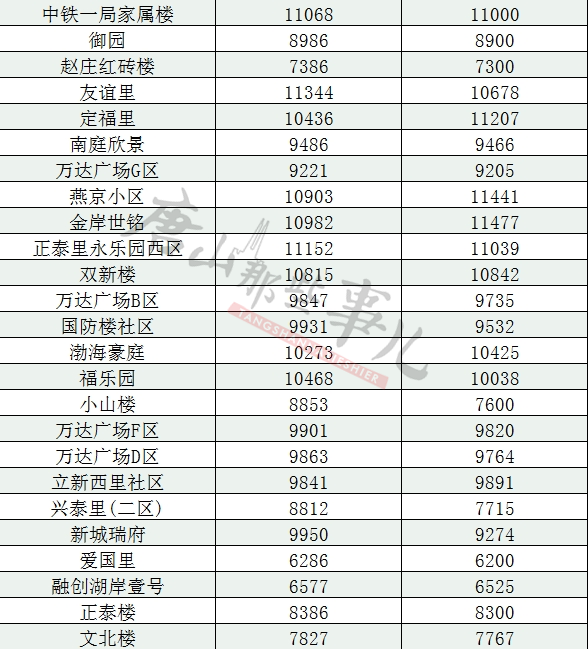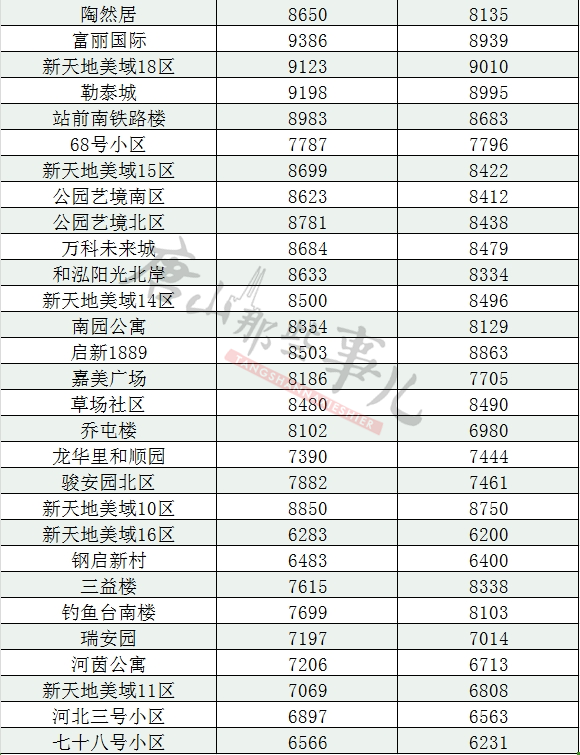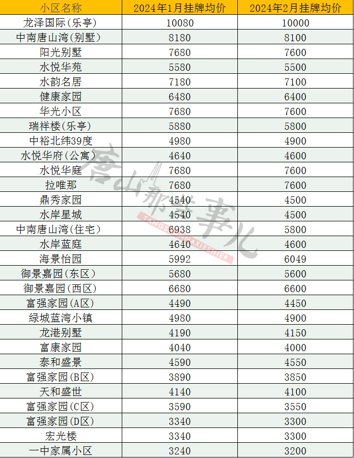 唐山各县区二手房2月最新汇总表(仅!供!参!考!)