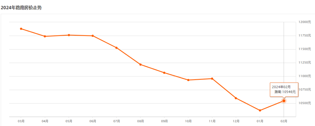 环比上月上涨0.66↑路南区 路南2月二手房均价 10546 元/m²