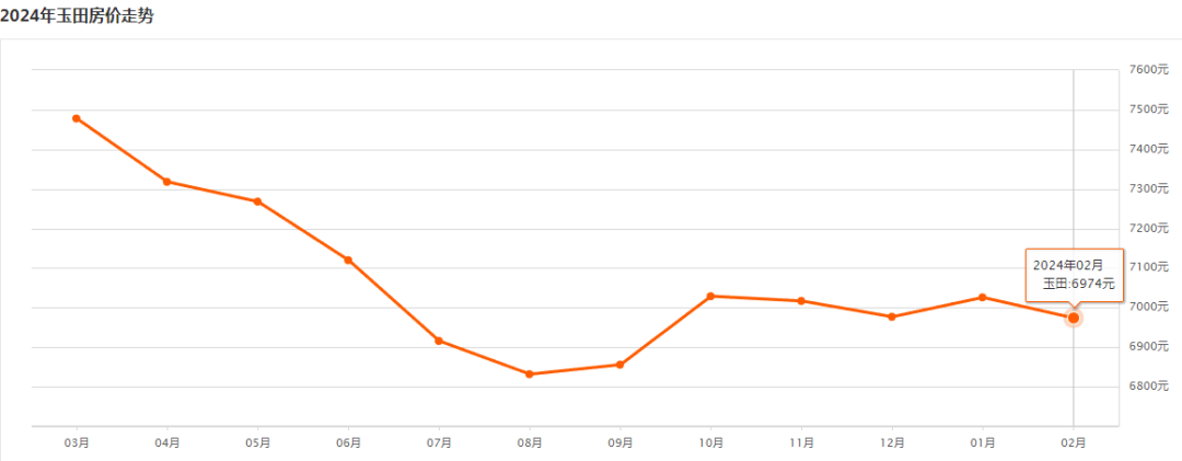 环比上月上涨0.42↑玉田县 玉田2月二手房均价 6974 元/m²