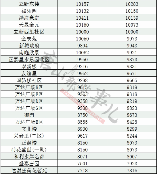 ①以下的房价数据为唐山二手房房价