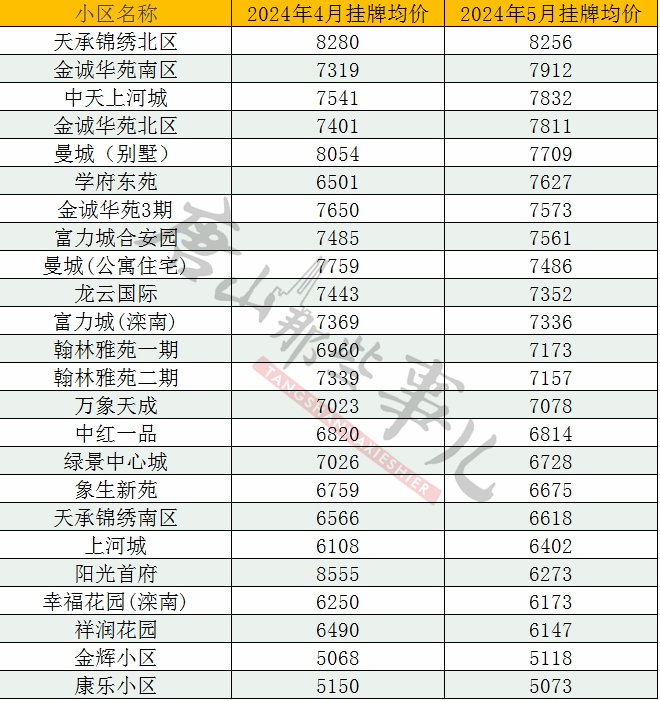唐山各县区二手房5月最新汇总表(仅!供!参!考!)