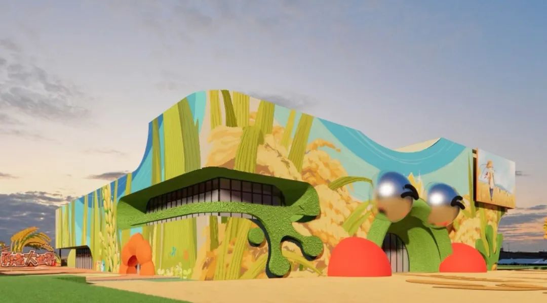 米粒王国,由中建文化旅游发展有限公司以O+EPC方式,负责策划-设计-建设-运营的总体工作。项目占地面积100亩,总体投资3亿元,是集智慧农业科普展示、农业文化传承活化、都市农业休闲体验等功能于一体的城郊家庭亲子、青年社交一站式微度假目的地。 距唐津高速南出口仅3公里,自唐山市城区出发,驾车20分钟即可抵达,交通十分便利。 原创IP形象 传播专属“稻田文化” 米粒王国提炼稻地镇特有文化元素,以“稻文化”为主题,开发“米米、粒粒、蛙赛”三大原创IP主题形象进行创造性转化。 米粒王国将IP应用于各种场景设计中,如建筑立面、精神堡垒、雕塑小品、LED屏、甚至围墙护栏上;将IP应用于日常活动中,如放飞蛙赛风筝、研学绘本、探险打卡中。同时,通过三大原创IP形象衍生一系列文创,如文创雪糕、绘本故事画册、微信表情包、IP形象盲盒、毛绒公仔等 三大梦幻场景