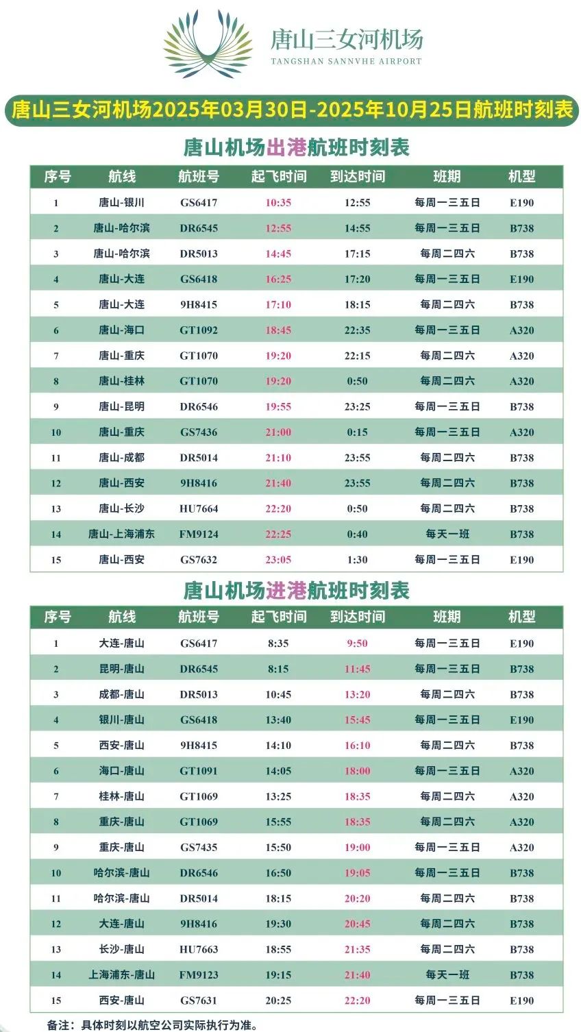 推出部分特价机票 据唐山机场发布信息,2025年机场夏秋换季航线工作顺利完成,3月底换季后航线调整情况如下: