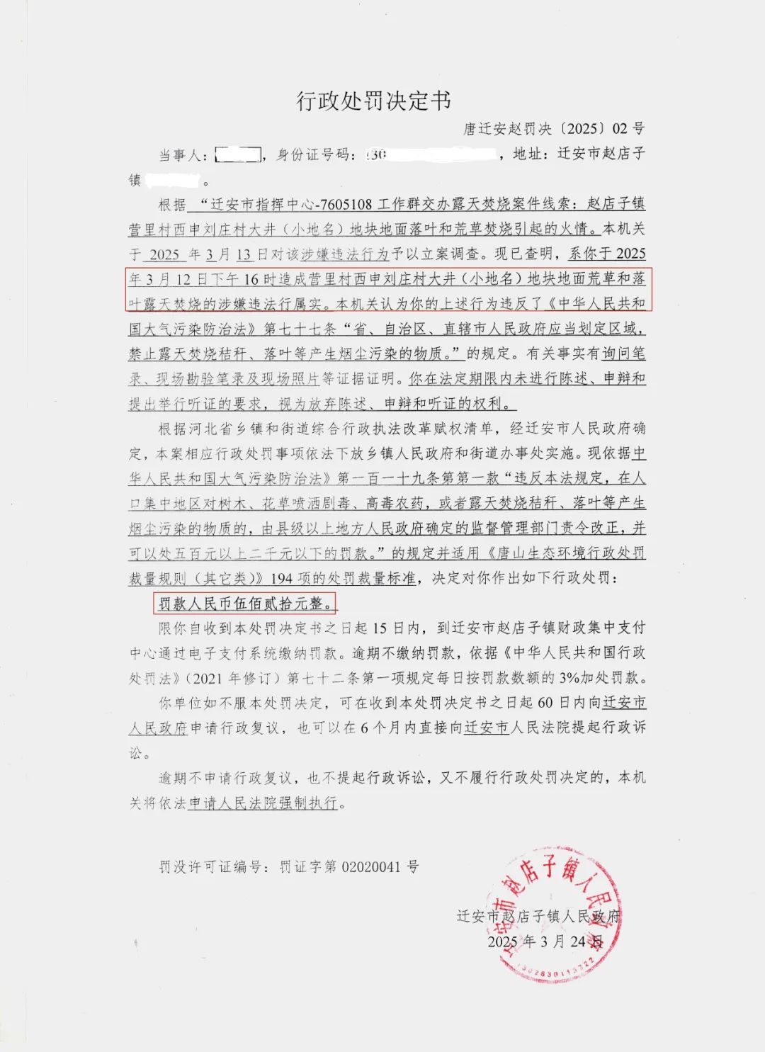 唐山又有两名村民被通报、处罚 露天焚烧垃圾、杂草及农作物秸杆属于违法行为,切勿再抱有侥幸心理图一时方便将垃圾、杂草及农作物秸杆焚烧了之