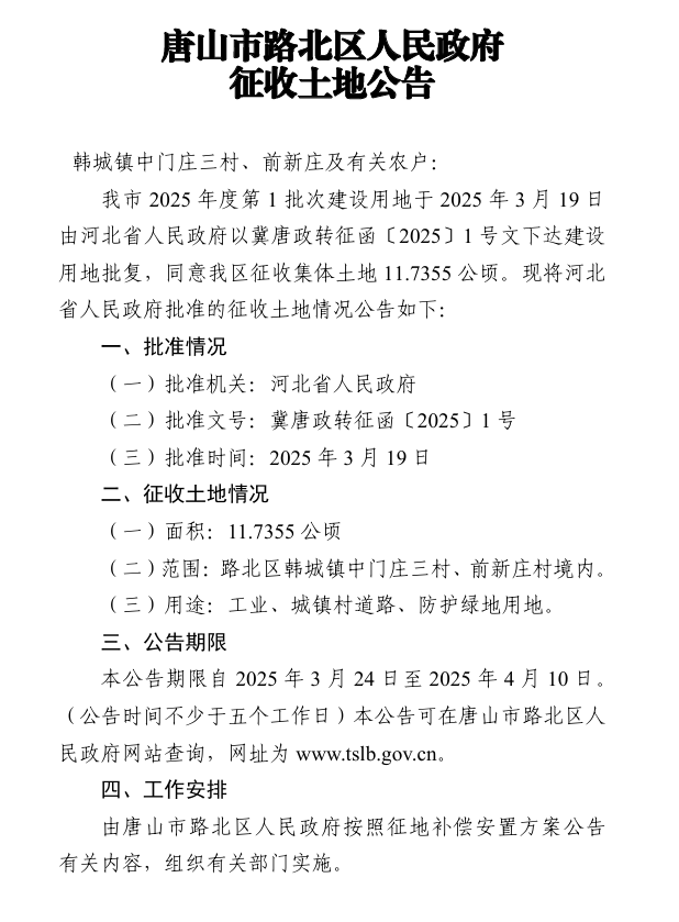 唐山路北区最新征地公告