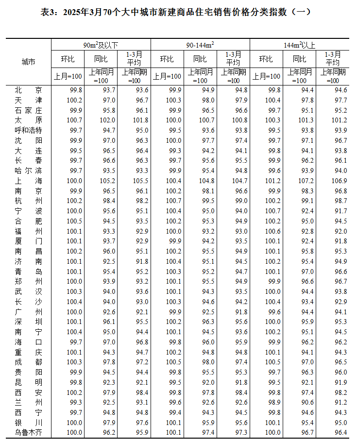 4月16日,国家统计局发布2025年3月份商品住宅销售价格变动情况统计数据